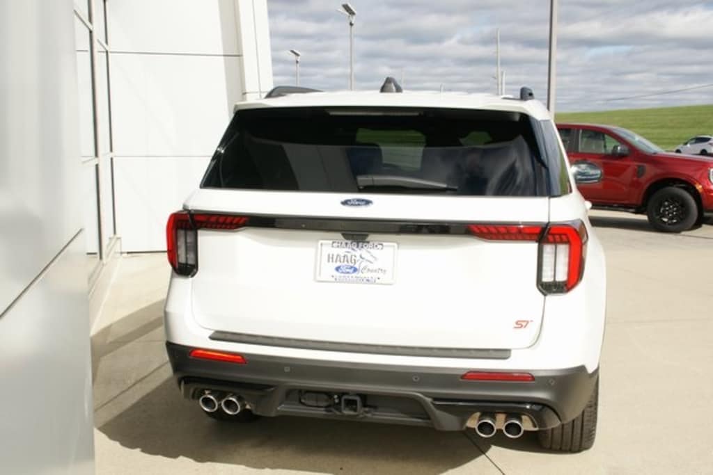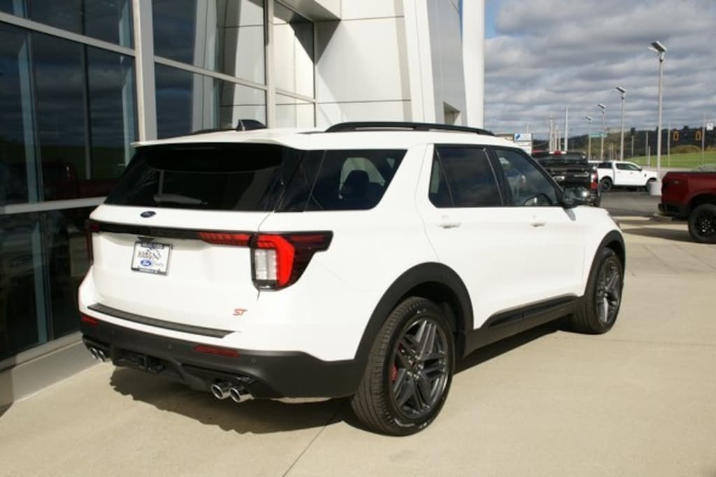 The Explorer STs bold design announces its capability before you even hit the ignition. Distinctive black mesh grille, 20-inch machined aluminum wheels, quad chrome exhaust tips, and exclusive ST badging showcase its performance pedigree. The aerodynamic sculpting, LED signature lighting, and athletic stance deliver a commanding presence from every angle.
